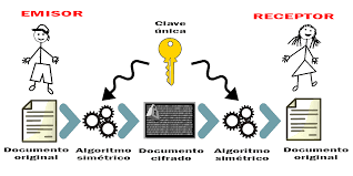 - Criptografía de clave simétrica: es un método criptográfico en el cual se usa una misma clave para cifrar y descifrar mensajes en el emisor y el receptor. Las dos partes que se comunican han de ponerse de acuerdo de antemano sobre la clave a usar. Una vez que ambas partes tienen acceso a esta clave, el remitente cifra un mensaje usando la clave, lo envía al destinatario, y éste lo descifra con la misma clave.