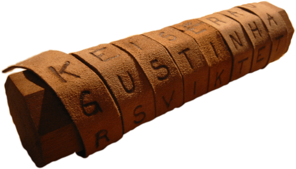 Los espartanos también usaban la criptografía para proteger sus mensajes; concretamente, una técnica conocida como cifrado por transposición que consistía en enrollar un pergamino sobre una estaca (llamada escítala) que servía para ordenar las letras y mostrar el mensaje. Para poder descifrarlo, el receptor debía contar con una escítala del mismo diámetro que la que había usado el emisor (criptografía simétrica) porque era la única forma de visualizar el mensaje de la misma forma.